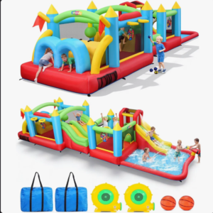 βWater Slide, Jumper Playhouse With Two Air Blowers & Ball Pit & Obstacle Course & Basketball Hoop & Target & Climbing Wall, Target, Water Cannon For Backyard And Family Fun